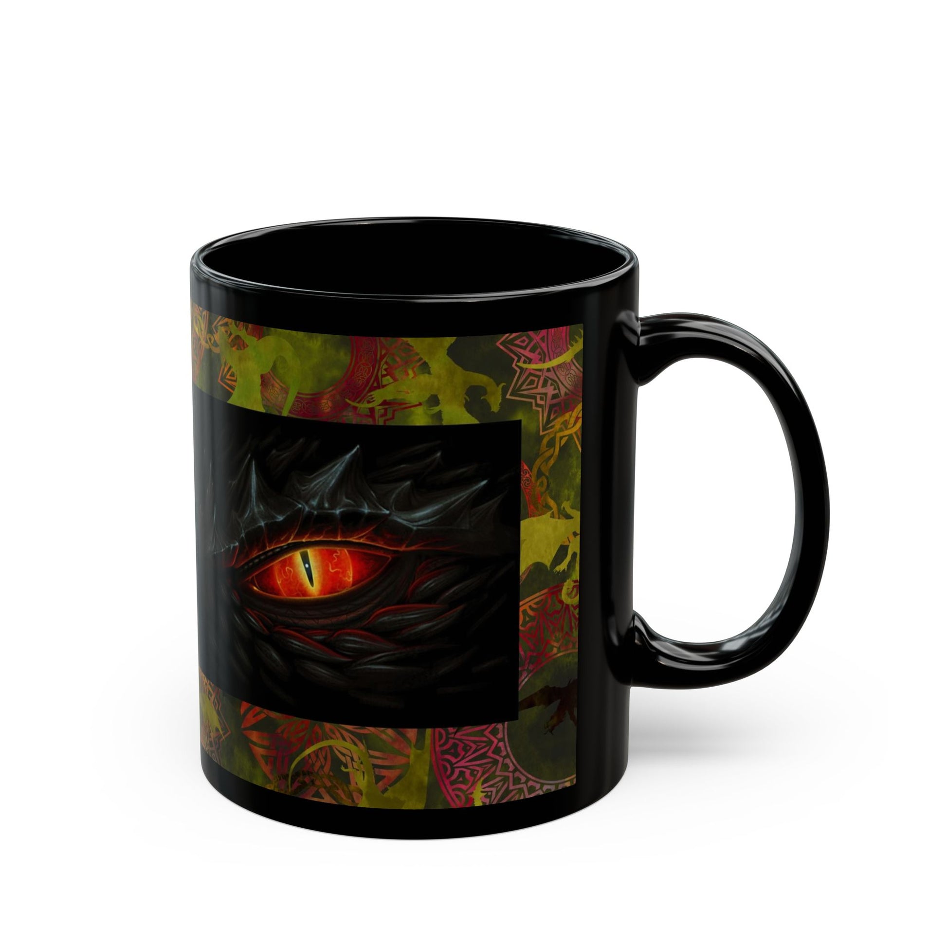 Ceramic Mug: Black; Dragons