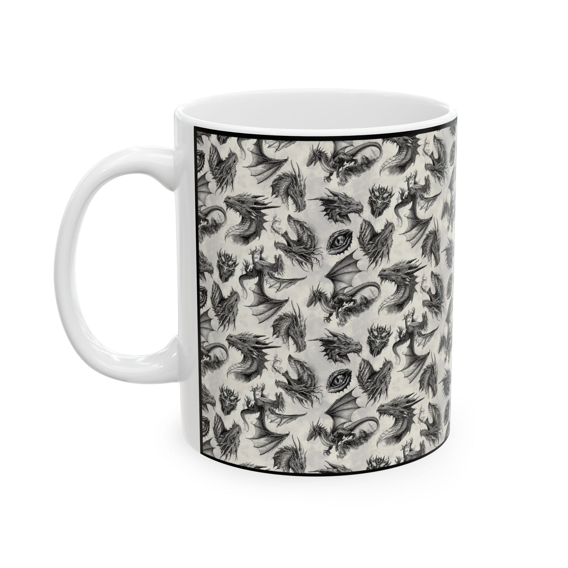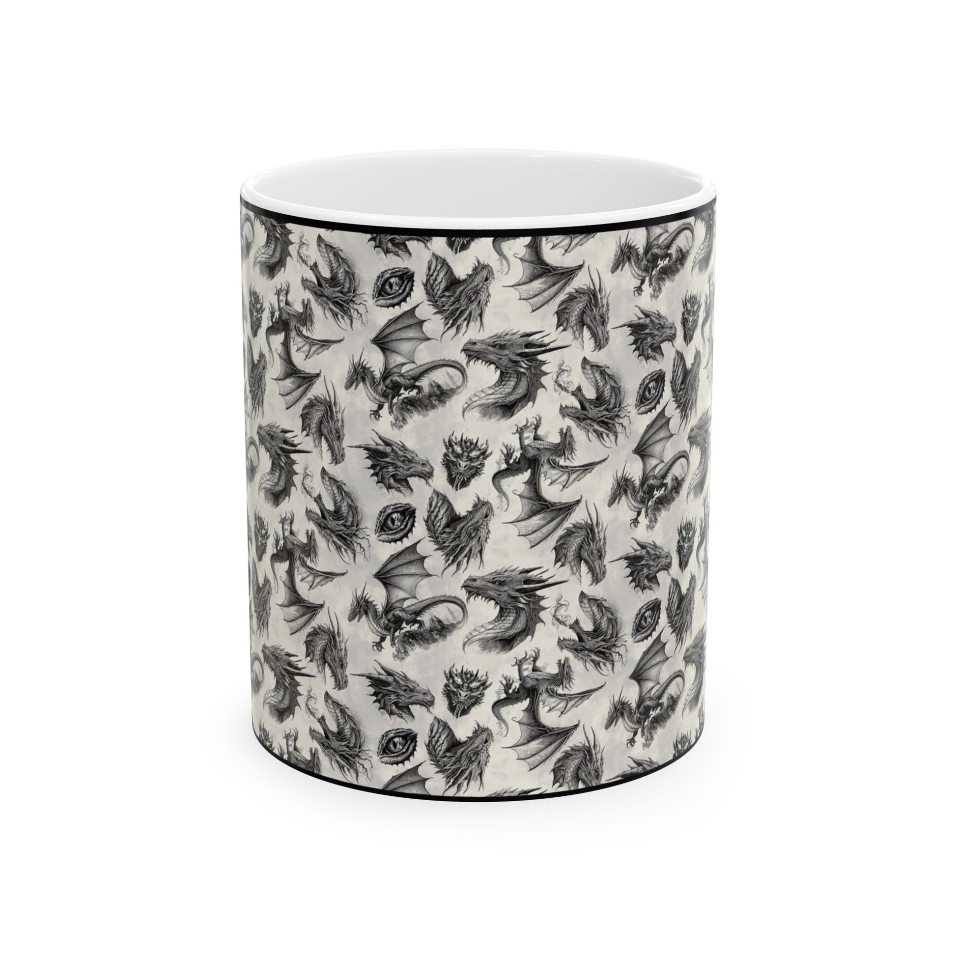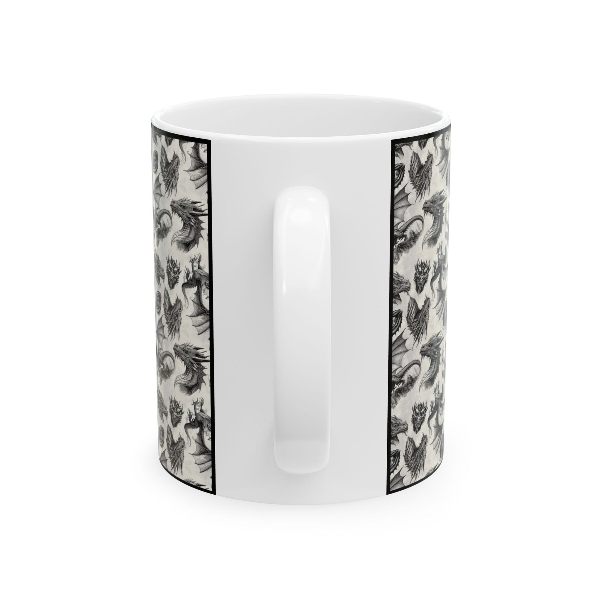 Ceramic Mug: Black; Emerald Dragons [Dragon Etching Black/White]