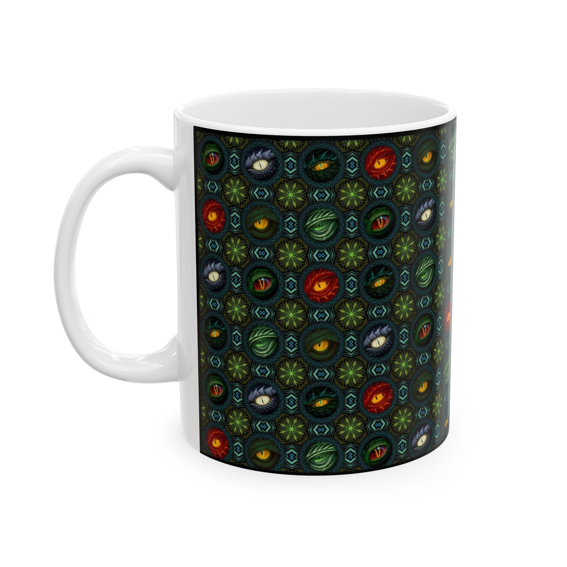 Ceramic Mug: Black; Emerald Dragons [Dragon Eyes]