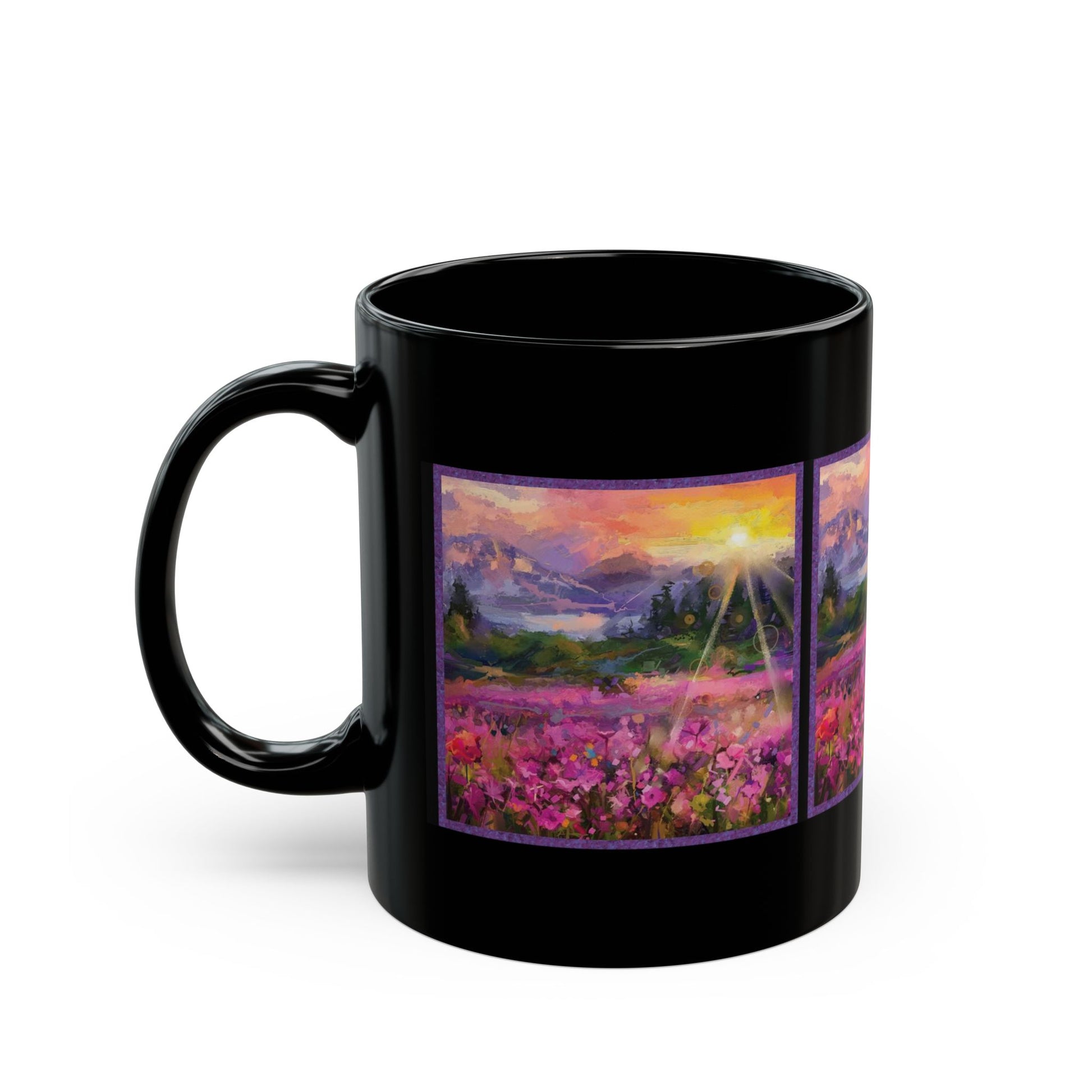 Ceramic Mug: Black; Year of Art" [Flower and Mountain]From In the Beginning Fabrics.