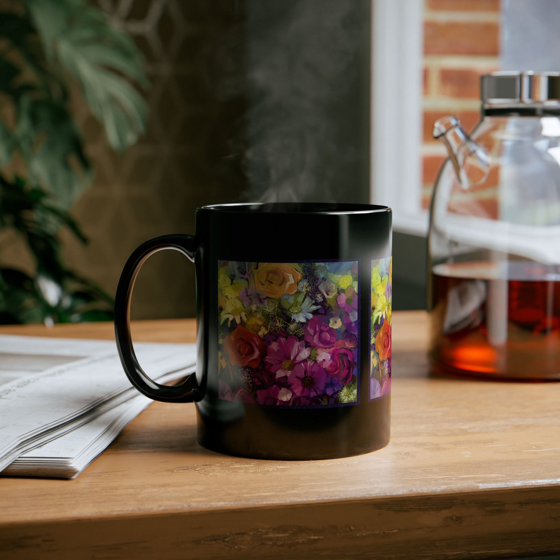 Ceramic Mug: Black; "Year of Art" [Flower Bunch] - From In the Beginning Fabrics.